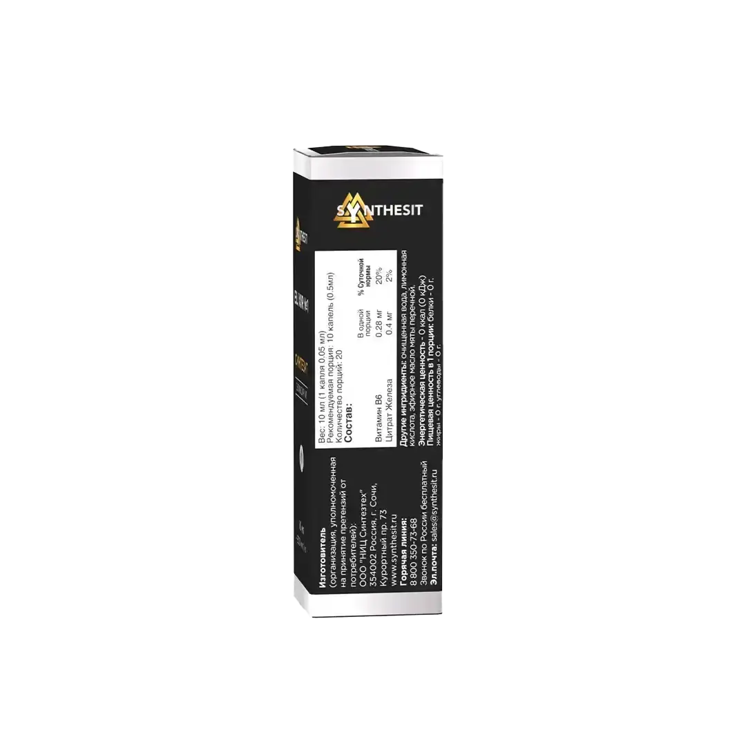 Состав: Очищенная вода, цитрат железа, лимонная кислота, эфирное масло мяты перечной, витамин В6.